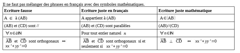 Signes mathématiques et français |